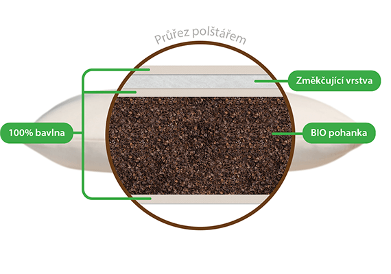 Unikátní struktura pohankových slupek umožňuje mikrocirkulaci vzduchu, takže na sebe nenavazují cizí pachy ani pot, ze kterého by se mohla začít tvořit plíseň.